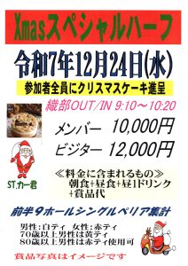初開催!Xmasスペシャルハーフ 2025年10月30日 コメントはまだありません 初開催です! クリスマスイブ当日に絶好のプレゼントをご用意いたしました。 料金もお値打ち価格に設定させていただきました。 コース時間限定です。お早目のご予約をお勧めいたします(笑)